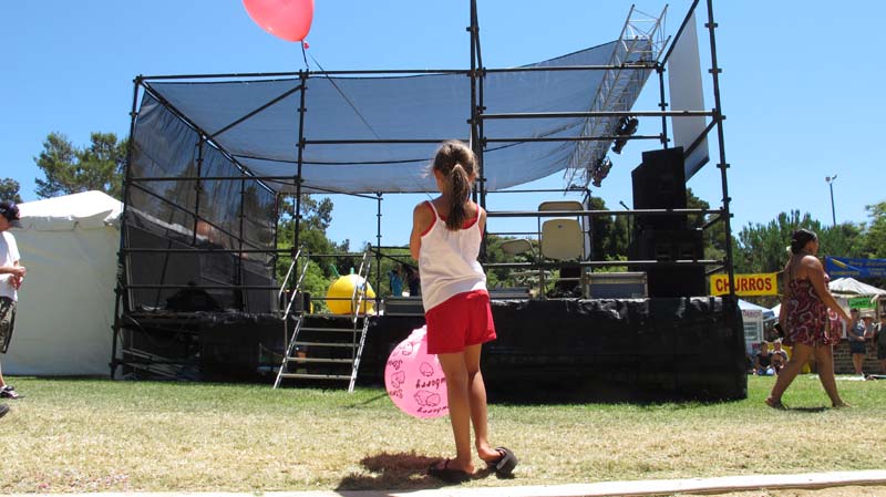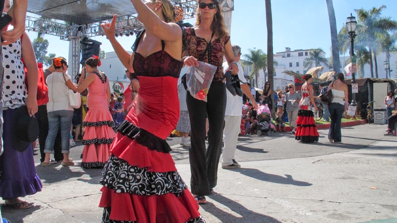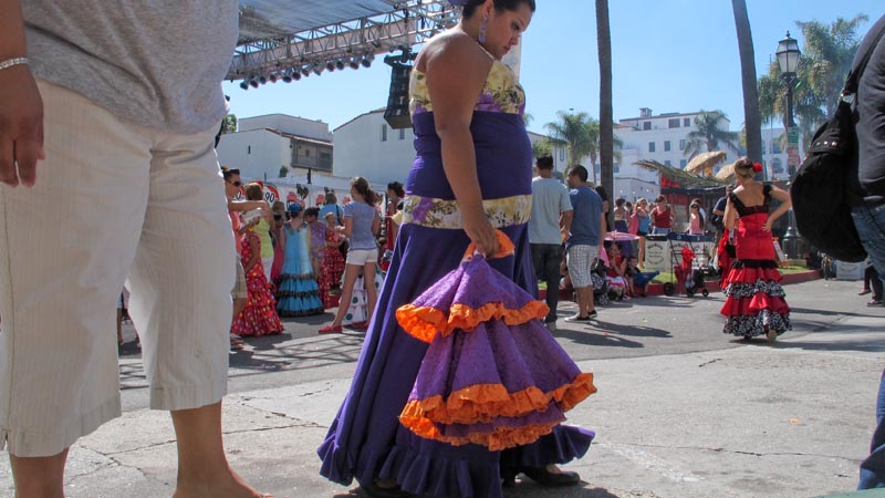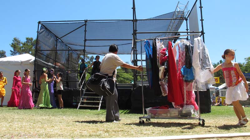 I feel spoiled by all this eye candy. Bright colors and curly ruffles. A stream of clothing carts that keeps coming and coming. I am pretending to be watching the stage but the real show is at the side. Groups of dancers are nervous about being next on stage so they primp, fan and twirl.
